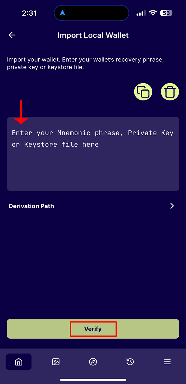4. Paste your private key into this text box, then select 'Verify'