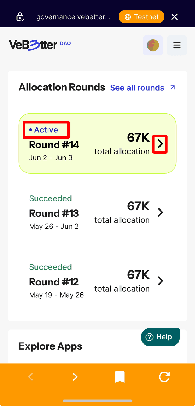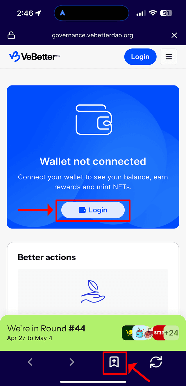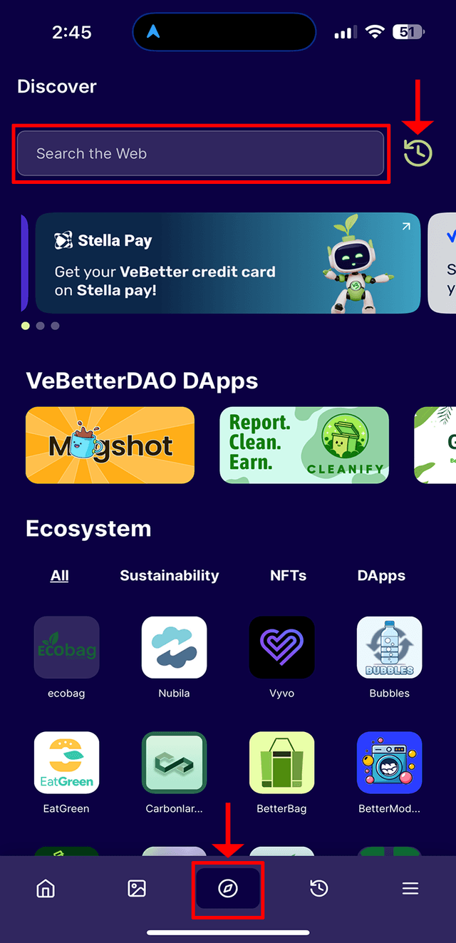 ・Open the VeWorld app and go to the 'Discover' Tab. Type in governance.vebetterdao.org in the address bar then tap the search icon