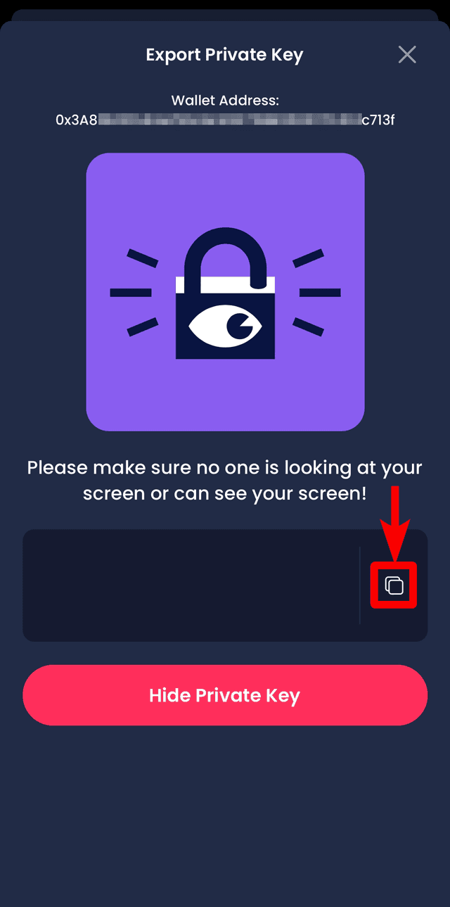 *Do not show or share this key to anyone as they will be able to steal your funds!