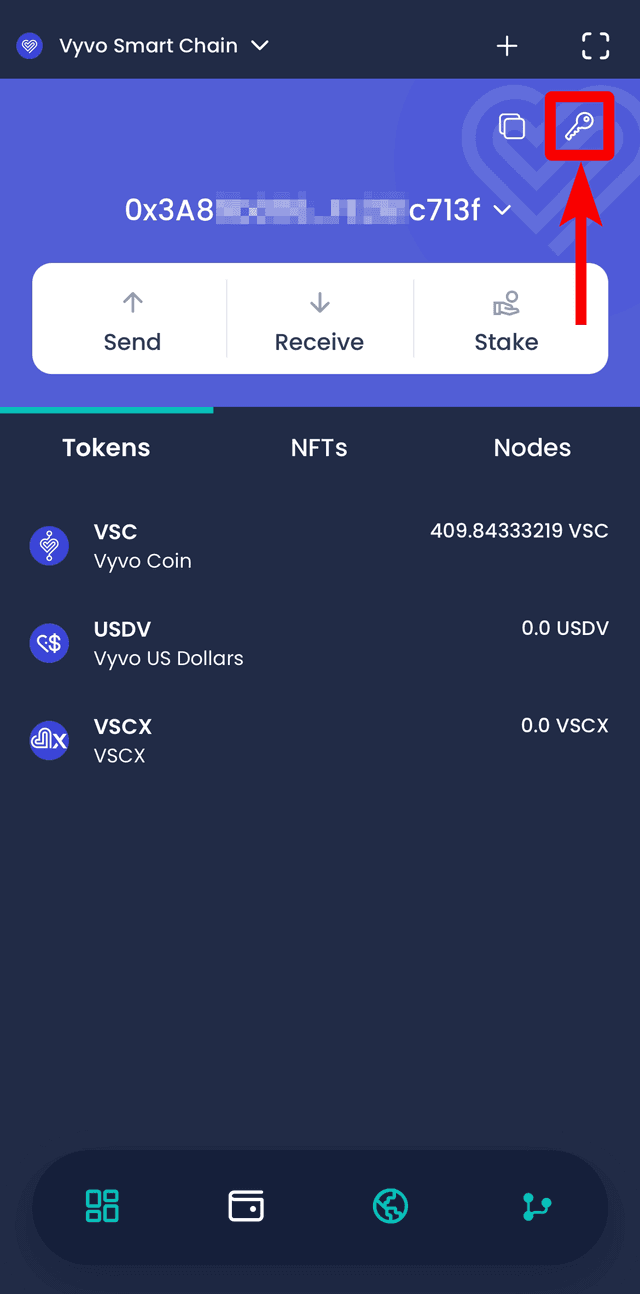 2. Select the icon at the bottom to copy the wallet address